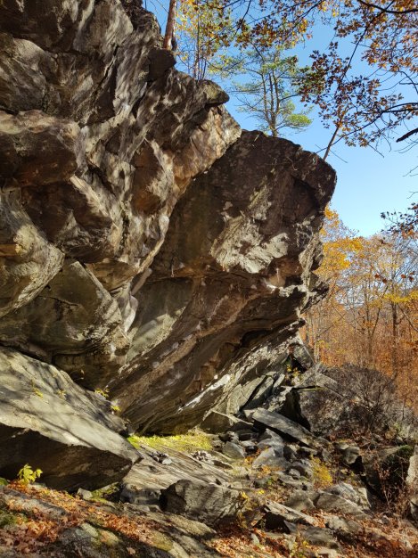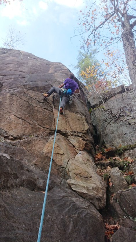After some overnight rain, Saturday was a textbook New England Fall day: blue, bright and crisp – enough to persuade Geoff and Ath to dust off harnesses and boots little used in the intervening decades and get to grips with some Schist. You’d hardly know they’d had a “pause” in their climbing careers.