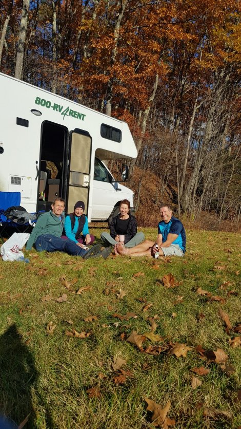 By now it was getting properly dark and we groped our way down the leaf-covered trails and were thankful to make the campground without benightment or serious injury (those leaves are SO slippy!)