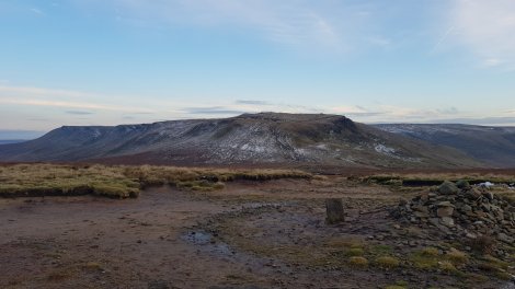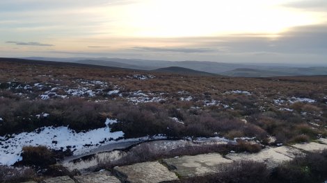 We’d passed Kinder on the way to the crag – magnificent in the sun, with its first dusting of snow set off against a bright blue sky. By the time we got home I figured that, with a quick turn around, I could just about squeeze in a dash around my favourite running route. A bit slippery on Mill Hill…