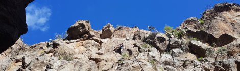 Another toasty day (our last of the trip), another 4 karabiner crag and another approach from above into another narrow N-S Canyon. Actually, into the same narrow Canyon as yesterday, […]