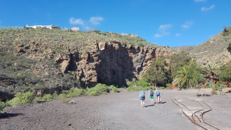On paper, Fasnia looked to be a good venue for us: a good mix of grades and the option of sun or shade in a fairly handy location. The guide warns that the approach track can be a bit dodgy (it certainly is!) but even parking before this it’s only a 5 minute walk. First impressions of the crag aren’t entirely favourable – the location is almost urban and the crag itself somewhat post-industrial, with a cluster of buildings, a small aquaduct, and even a disused narrow gauge rail track. Presumably it’s been quarried or mined at some stage