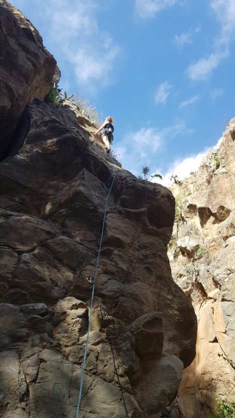 This turned out to be a good move, as the climbing was much better than the aesthetic – solid basalt formed into really interesting shapes (presumably the remnants of huge crystal structures in the cooling lava?) Amazing contrast with yesterday’s bubbly rock at Los Naranjos, with hard and almost shiny surface favouring crimps and edges.
