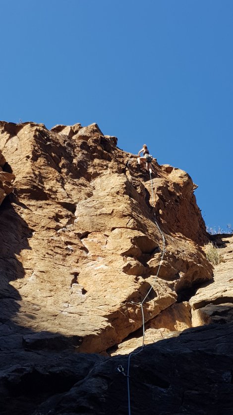 Back in the middle of the Canyon an obvious sunny upper wall with a couple of well-chalked lines looked much more appealing.