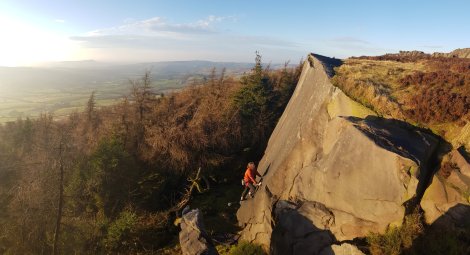 The penultimate day of 2019 turned out to be an absolute cracker – blue skies as far as the eye could see, and a toasty 8C. Undecided between routing and bouldering, Jake and I saddled up with kit for both and headed for The Roaches. Somewhat predictably, so did droves of others – I’ve never seen it so rammed, though there weren’t many climbers in evidence. We bypassed the worst of the parking mayhem at the Popular End and pressed on to Roche End to access the Skyline.