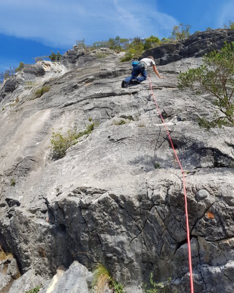 The guide suggests there are a handful of token 6s in amongst the stellar-looking 7s and 8s but unsurprisingly they turned out to scruffy, polished, short affairs – certainly not worth worsening my dodgy shoulder to flail on. Back to Sector Camino for the excellent Greim, a 20m 6a+ followed by a stiff bulge and stunning headwall extension to rack up a 37m 6b+. Outstanding!