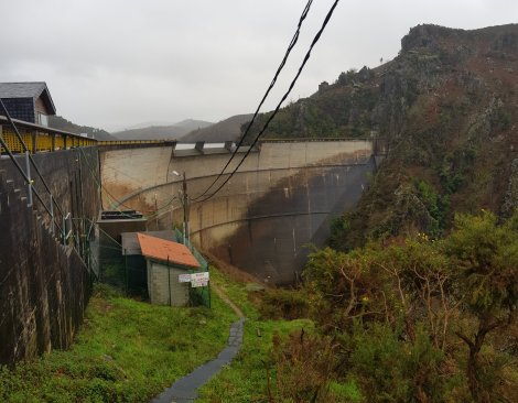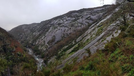 We’re heading west to Galicia to try to outflank a major weather system blowing in from the Atlantic, but that did mean an unpleasant few hours driving through the eye of the storm. Our first port of call was Eume, a protected natural area along the river of the same name, and home to one of the region’s major crags. Situated alongside a huge dam, the smooth granite slabs offer routes of well over a hundred metres, but only to experts in “adherence”. Apparently there are no holds, and friction is your only friend…