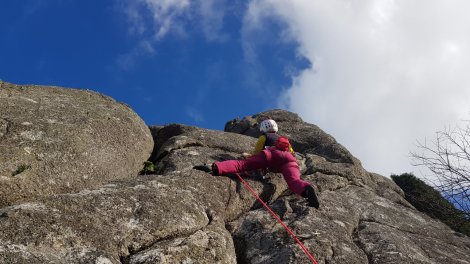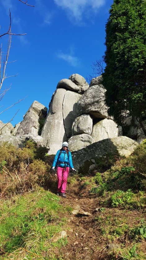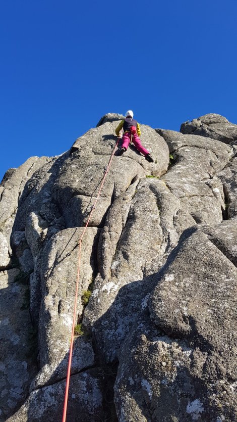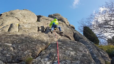 This granite capped hilltop is a magnet for mountain bikers, runners and picnicking families, as well as climbers, and you can imagine you’ve been transported to a sylvan corner of Dartmoor. The climbing is on a series of small buttresses and pinnacles on the summit, facing all directions and with fantastic views all the way to the coast.