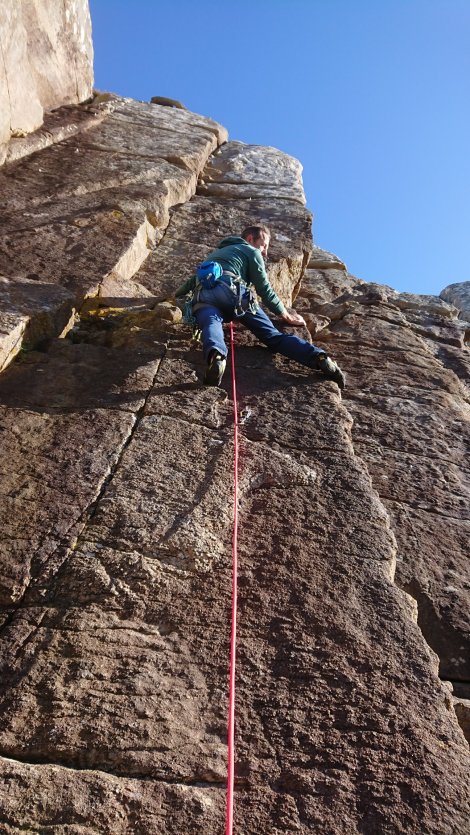 It was breezy enough as we wandered over to the crag but happily very sheltered from the NE wind when we arrived, and what an enchanting little sector it is, with non-tidal access and a comfortable ledge system beneath the routes.