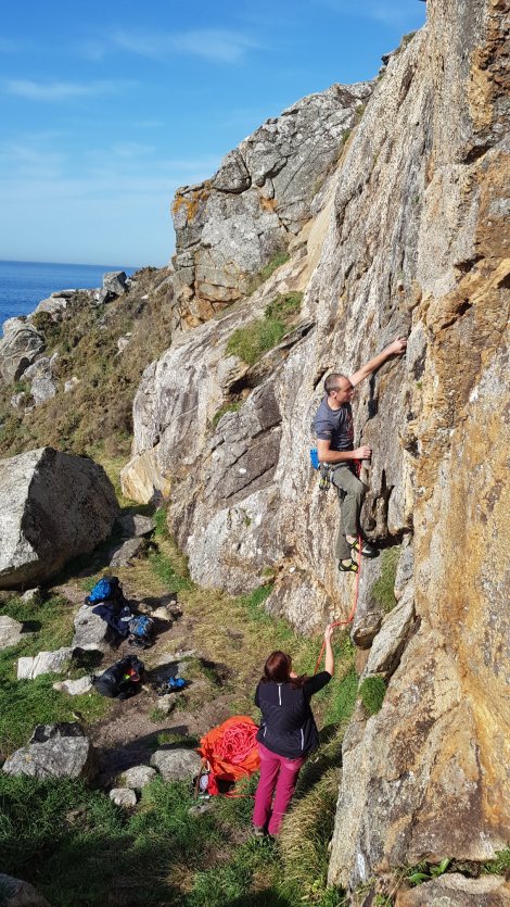 There are only 5 routes shown in the Galicia Vertical guidebook but there are actually about a dozen (perhaps too many for the amount of available rock as they’re a bit squeezed in), all about V to 6a.