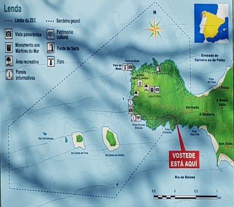 Monteferro is a small forested peninsula just south of Vigo with a few scattered crags amidst nature walks and fishing spots. The Donde Escalar write up gets it bang on: “Several interesting sectors to pass the day by the sea in an idyllic setting” – couldn’t have put it better myself. The climbing is fun rather than fantastic, on really knobly granite reminiscent of the best of Bosi, with well bolted routes up to about 15m, (worthy of its 3 karabiners) but the surroundings make it well worth the visit.