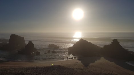First stop the world-famous Odeceixe beach, surrounded almost 360 degrees by water where the river loops around to meet the sea – impressive swimming effort by Helen and Jim, especially considering the huge swell.