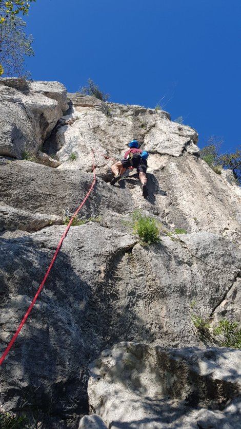 … we stumbled across Outao. Not covered in the Versante Sud guide, and mentioned only briefly in Jingo Wobbly (which has only 2 routes) this turns out to be a cracking little crag. About 30 routes from III to 7a, mostly 6as & bs, and up to 35m long.