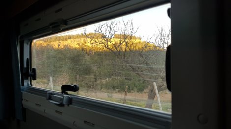 Waking up in the van at the Alto Mijares refugio, and looking out of the bedroom window; hrmmm, where shall we go climbing today?