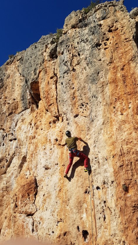 I managed to surprise myself getting Sombra del Icaro, 7a+, with a very bouldery start (2nd go) – not the best line, but chuffed with the tick.