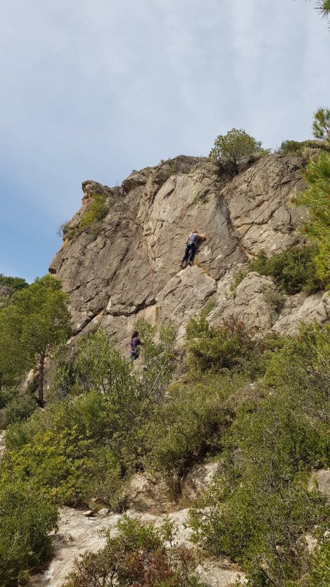We only had a few hours, after a late start waiting for the sun to come out and then packing up as it left the south-facing crag around 4ish, so we did a few routes on the adjacent buttresses: Sectores El Toxo del Pinxo and CEAP.
