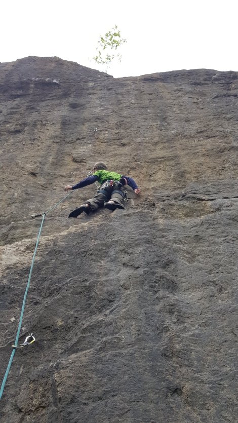 With warmer temperatures on Thursday, Helen and I extended our search for a low-key / low-risk venue and settled on one of the Matlock quarries – another post-industrial eyesore repurposed into a sylvan nature habitat and climbers playground.