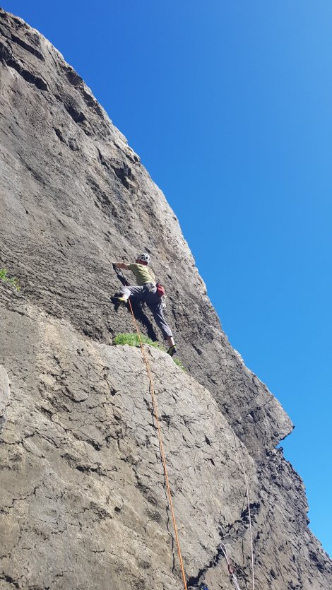 Pitch two is much more my cup of tea – a weaving quest seeking out the line of least resistance up a steep wall. Here’s Graham showing how it’s done: