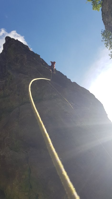 The second pitch isn’t much easier (more 6a than 5c in my reckoning) but together they make for a very fine outing. Great effort by Jake to onsight it – according to UKC, not many do. He’s also getting pretty adept at hauling!