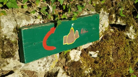 Further along, the crag disappears into the trees and takes on a shadier countenance – welcome by now, as it’s getting a tad warm in the sun. For a final route we do Konrad Oed Ged Weg and are rewarded by one of the cute metal “book boxes” which feature in these parts so you can register your ascent.