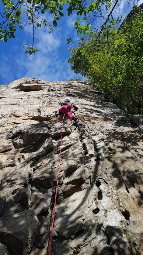 Not to be outdone, we joined in the fun. The rock is Gneiss (which was nice) and offers a really interesting mix of edges and pockets along with more continuous cracks. It’s surprisingly unpolished despite the obvious high level of usage. The overall crag architecture is a system of soaring corners and aretes, separated by walls at various angles from steep slabs to gently overhanging. Something for everyone.