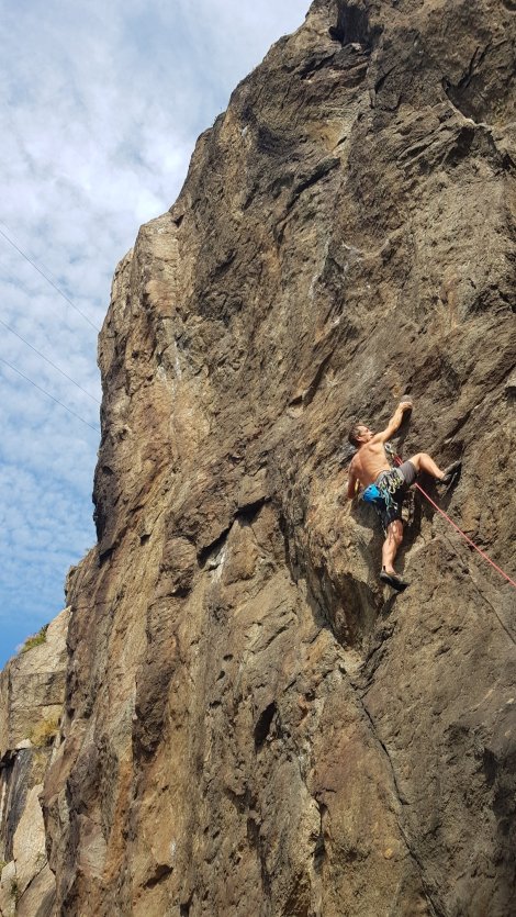 30+m high and with only half a dozen routes, they all get stars in the guidebook (which is very sparing in awarding them). The climbing is vaguely reminiscent of the Cromlech with thin edges, cracks and pockets. We did three of these and all were superb.