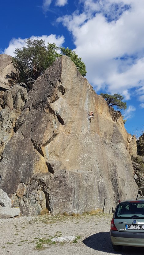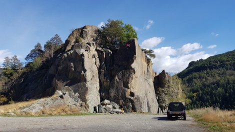 We gritted our teeth toll-wise and headed up to Valgrisenche to check out some of the more popular high-level crags. Leveragne is one of the longest established areas and has a large tally of very accessible roadside routes, with a great outlook. Unfortunately (for us in October) it’s shady most of the day which isn’t great when you’re at 1,000m