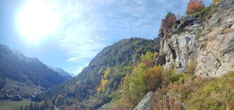 A message from Will, fresh back from Leonidio, prompted a further exploration of the crags further up the Valgrisenche. He and a Cham team were planning a foray through the MB tunnel to visit La Mecca and did we want to meet up? We overcame our doubts (1630m when the forecast was for cooling temps) on the strength of local knowledge, reinforced by the guidebook recommendation: “the favourable microclimate and good sun exposure make it possible to climb here even on colder days”