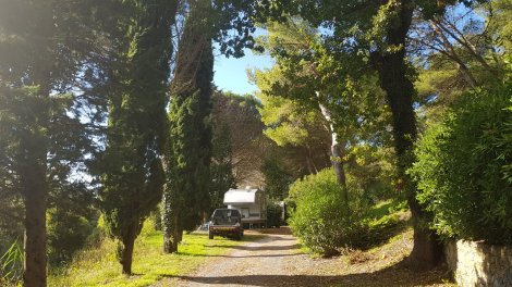 The slightly dull day perked up and we could enjoy the sea views from amongst the pine trees at the sprawling Camping San Martino.