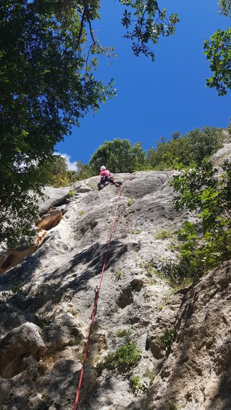 … though most of the climbing is inland. Scouring climbing forums and picking the brains of other Euro-craggers, we still didn’t come up with any recommendations for amenable, unpolished sectors, so we just took an educated pot-luck (prompted by a 5* status on Vertical Life) and wandered up to Placconata on Rian Cornei.