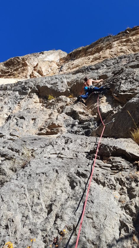 … before moving further right to sector Dalles a Kaki where we did Rouppets Chaud (not really worthwhile) and a couple of excellent 35m 6a/bs – possibly Rorro est arrive (with a recent extension) and Pedale Joyeuse (there’s been a bit of development and tidying up of anchors since the guide was published – there’s a topo here but it doesn’t completely resolve the ambiguity. http://cafbriancon.ffcam.fr/tzr/scripts/downloader2.php?filename=T004/fichier/67/45/5jlj7y2pofww&mime=application/pdf&originalname=TOPO_DU_POUIT.pdf