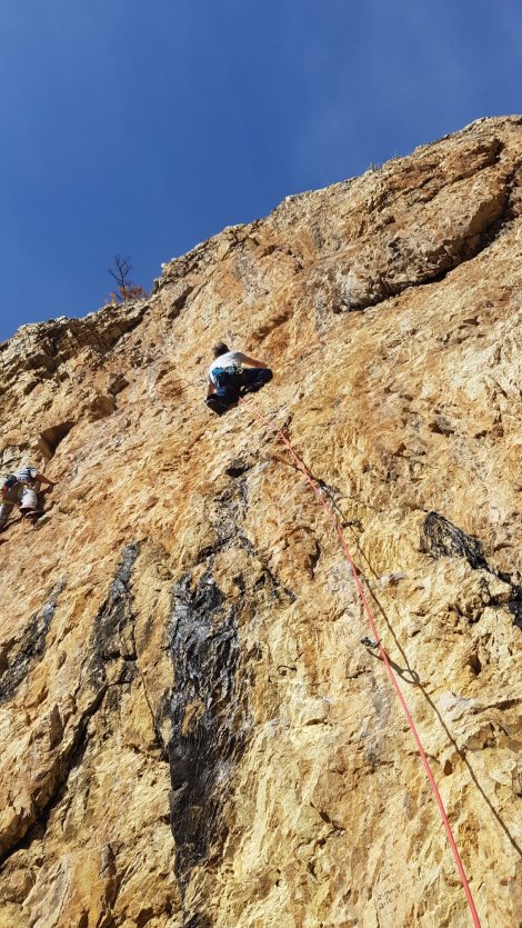 We just bagged a final last route of the day, before the sun lost its power. Tier Bouchon was a fun long 6a to finish on.