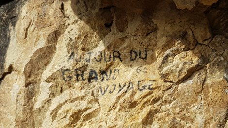 We first visited Rocher Baron almost 25 years ago, with two tiny tots in tow. The appeal at that point was the roadside / “pram-able” nature of the nearest south-east facing sector: La sieste au soleil. This bit of crag features a number of routes in the 3s and 4s and the photos in the guide of pre-schoolers in over-sized helmets cemented the impression of an “ecole”, reinforced by subsequent summer visits when it seemed as much a picnic area as a crag.