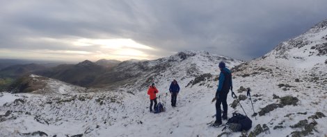 … Time to celebrate with a flask of hot chocolate, followed by the round of Crinkle Crags and the rest of the Langdale Horseshoe.