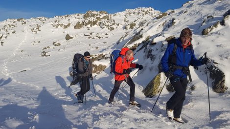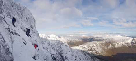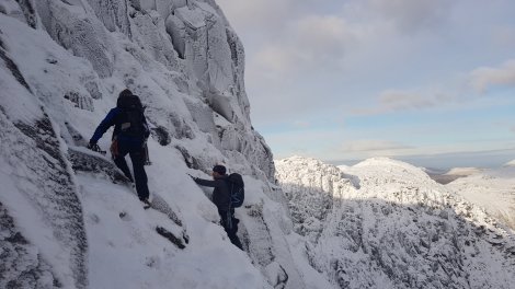 Not to worry – given the conditions we’d probably just be having a snowy walk anyway, and I’d always got the rope to “fall back on” if it turned tricky. The wander up The Band was pleasant if squidgy, but as we approached The Climbers’ Traverse things firmed up