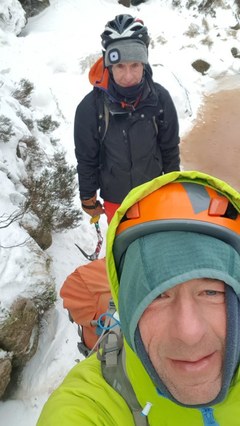 A couple of fun icy steps around two thirds height gave food for thought, and topping out into the face of the 50mph storm-force winds made for an atmospheric and memorable experience!