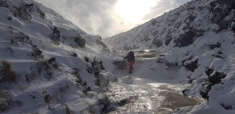 By Friday it was clear that some winter action was definitely on the cards, but further reports from The Downfall suggested it wasn’t quite there yet… Instead, Bill and I went for an adventure up Wilderness Gully, which was in excellent nick.