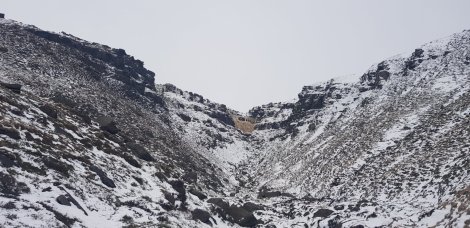 Sticking to the valley bottom kept us out of the worst of the wind and we puffed our way up the riverside path to the foot of the Downfall in a pretty respectable 80mins.