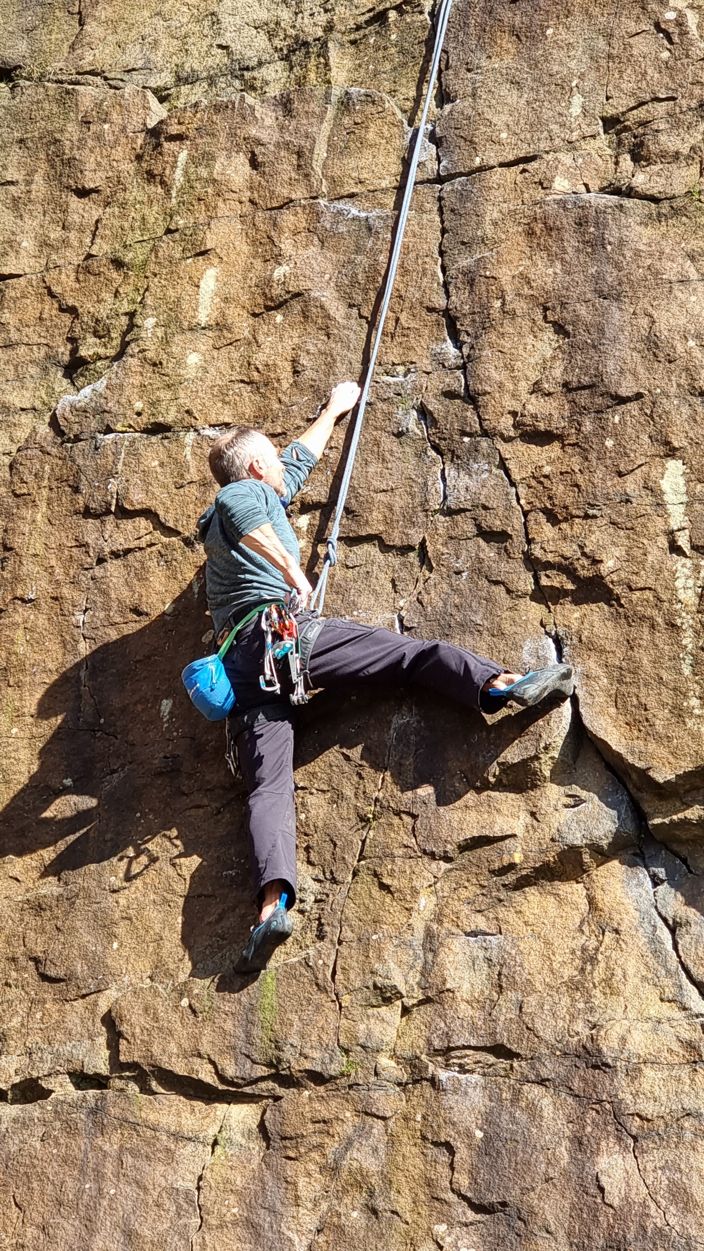 Friday’s forecast was more of the same, so we headed to Froggatt – Great minds think alike and we bumped into a couple of other teams including Jane and Sam. Here’s Sam on Big Crack