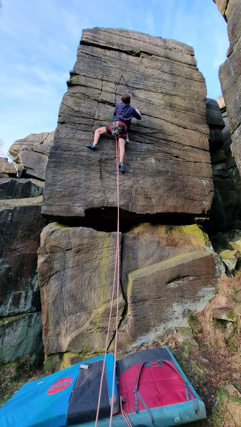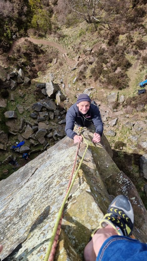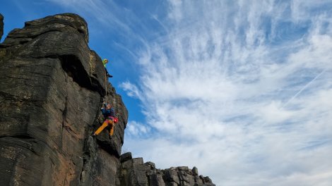 Wharncliffe was the unlikely spot for a socially distanced birthday get together with Jake – halfway and just about local to each of us, he celebrated in style with a cool lead of Desolation Angel, E6 6b