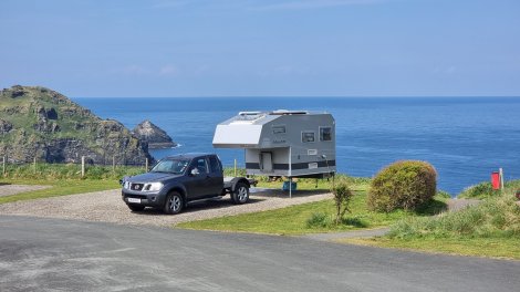 A change of campsite (to Tintagel) and a change of scene to the Culm Coast. Firstly, the campsite enjoys a tremendous position within sight of the Tintagel cliffs, and somehow we managed to snaffle the best pitch on the site 🙂