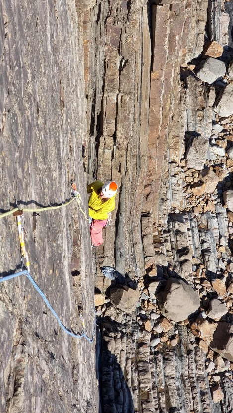 When it does finally topple, hopefully it will over the back of the cliff leaving this great route intact.