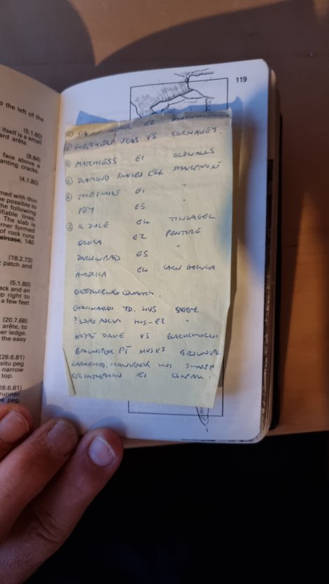 More scouring of our ancient guide (circa 1988) revealed a post-it tick-list of a similar vintage, and behold (at the bottom) the final route is Crimtyphon. Most of the rest have been ticked in the intervening years, but there are still a few I need to attend to!