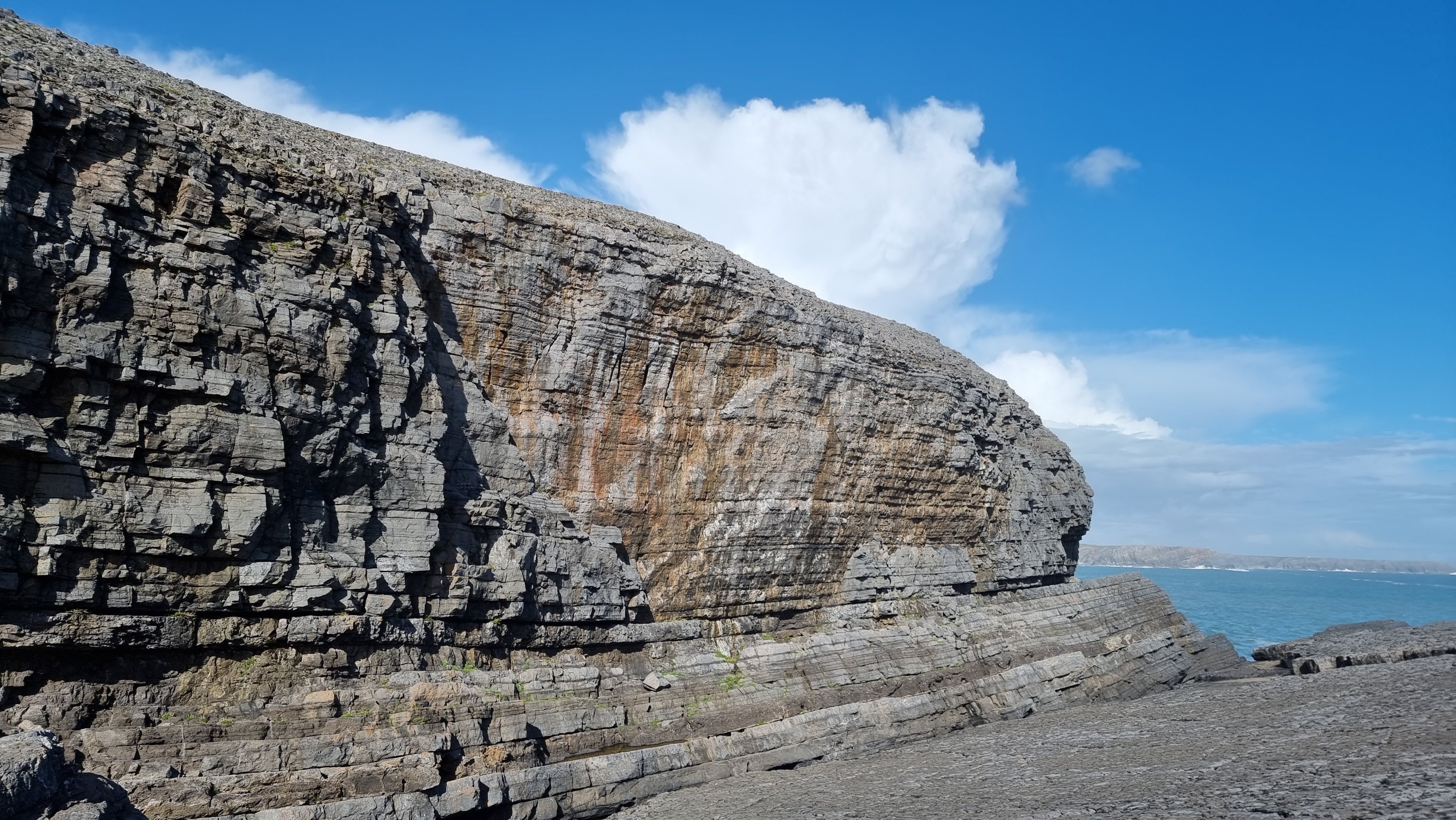 Sunshine returned on Saturday with the prospect of a full day on Range West, though still with a big sea to contend with and an unhelpfully early low tide (9.30am). An early start (at least by Rockaroundtheworld standards) had us on the crag not long after the tide turned, checking out the appealingly named Juggy Point. Sadly, the spray from the biggest of the breakers was still reaching half way up the crag.