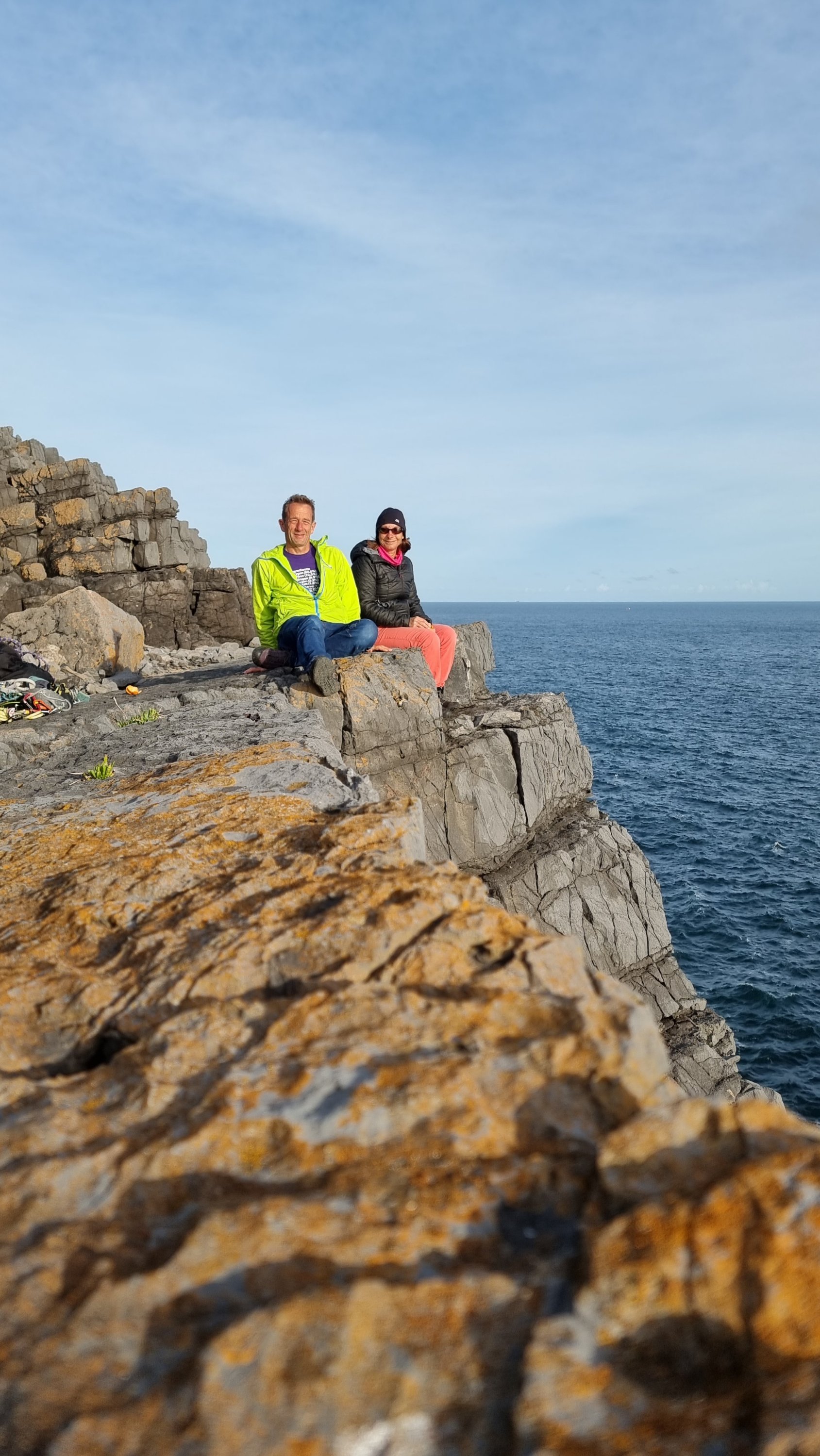 Helen followed in short order and we topped out just in time to phone through our food order to Jake and Leah who were waiting anxiously at the St Govans Inn as our appointed meeting time came and went…
