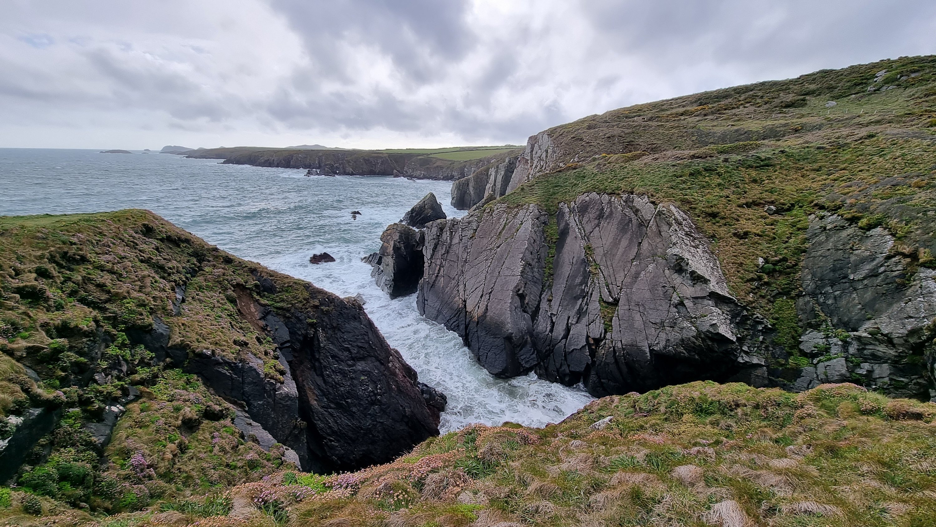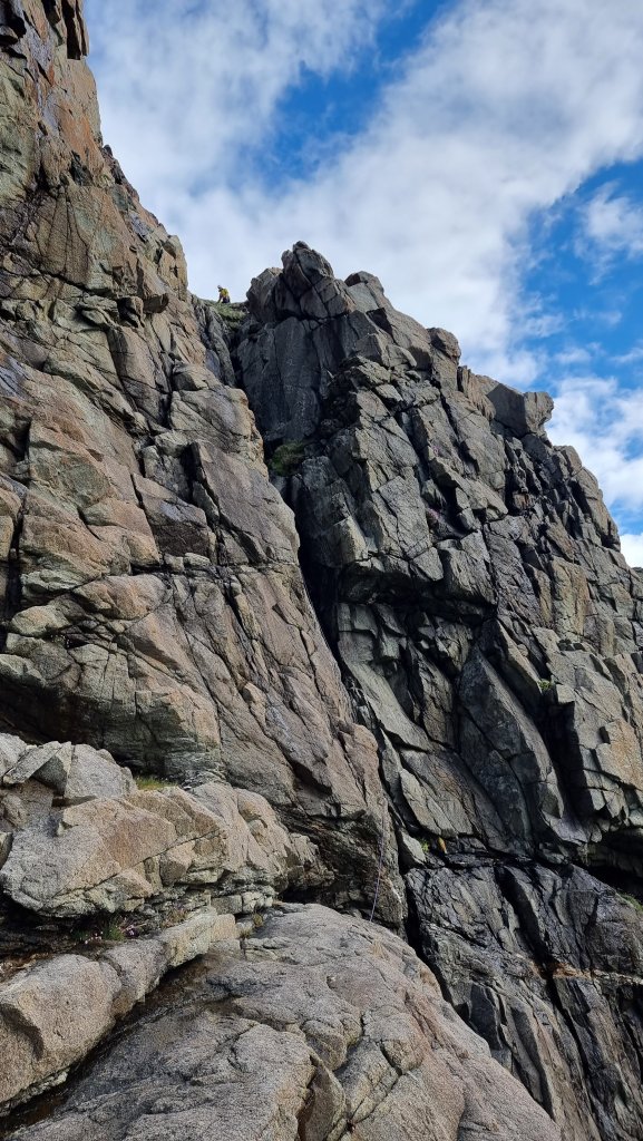 The crag itself soon comes into view, and it’s a strange cross between Pembroke’s answer to Bosi and a Welsh mountain crag.
