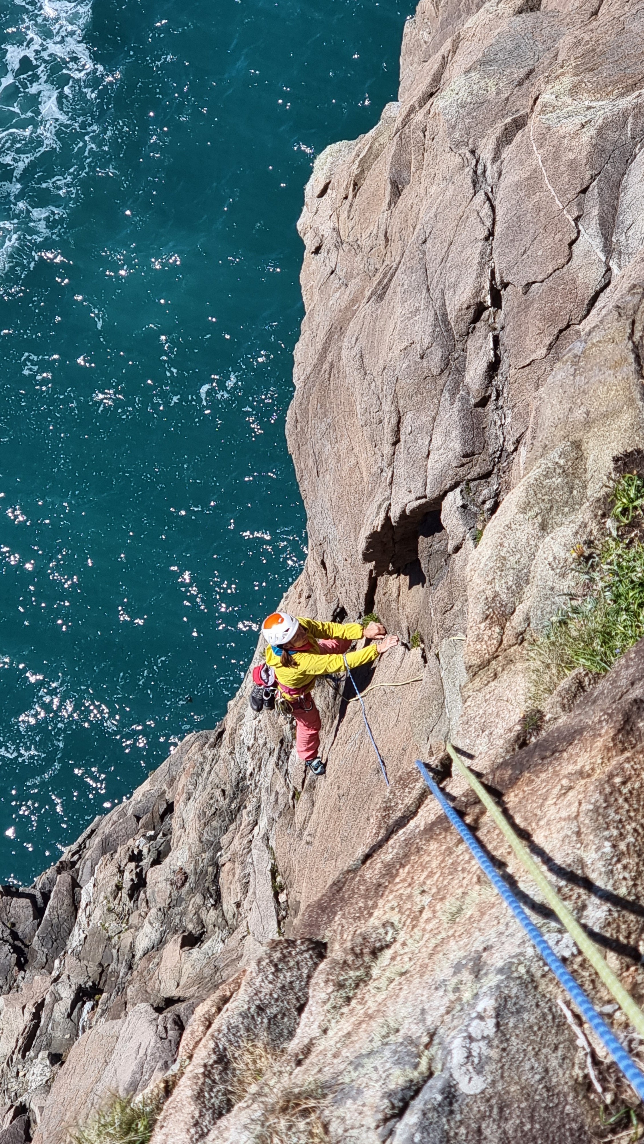 That still left a few hours before beer o’clock so we hopped over to the southern side of the headland for South Buttress, and it’s very friendly and largely non-tidal routes. The unimaginatively, but accurately, named Overhanging Wall, HVS, takes the fun, juggy line in the corner