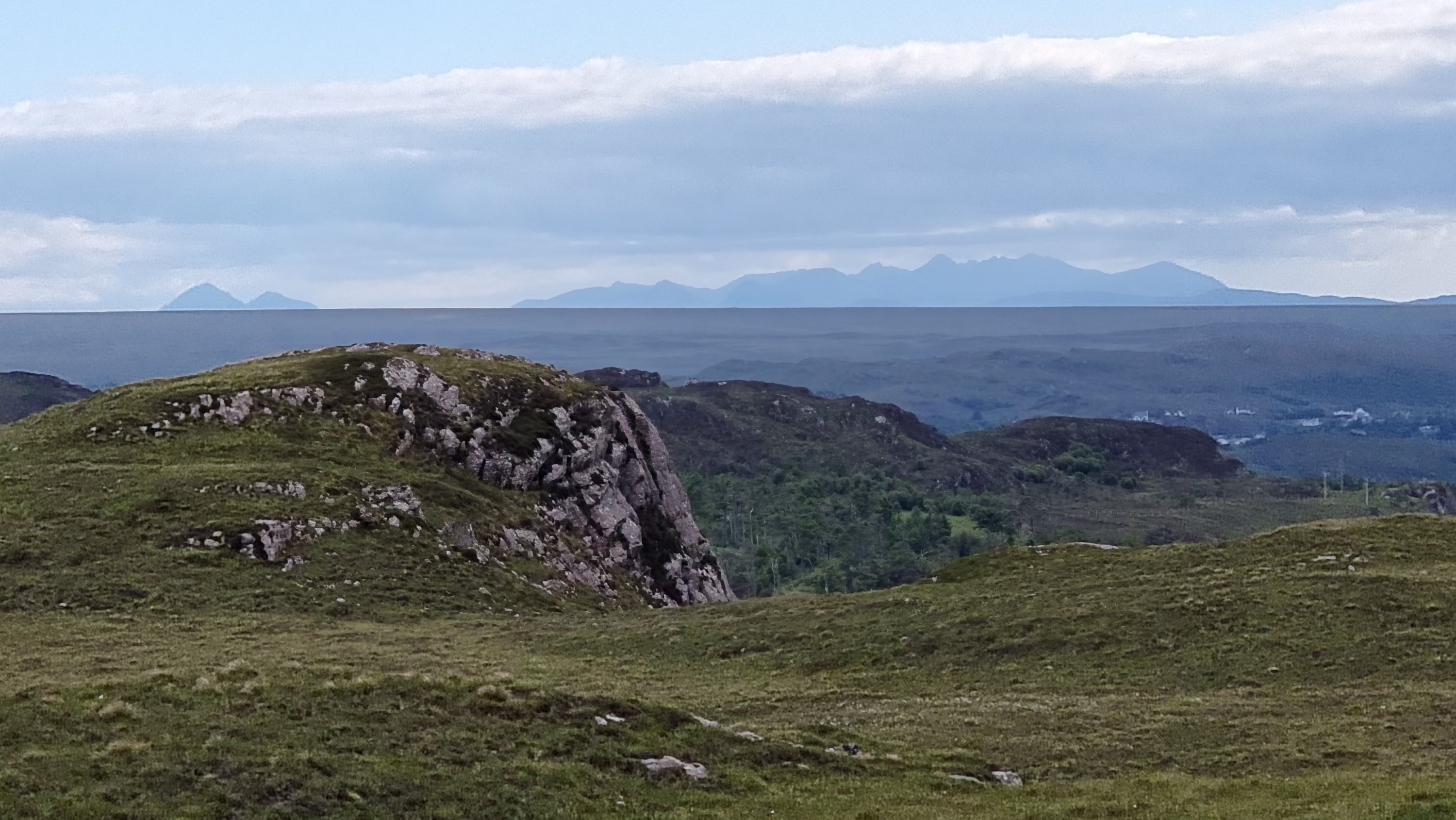 Great views out to the coast, with the Black and Red Cuillin clearly visible over the back side of Aztec Tower.