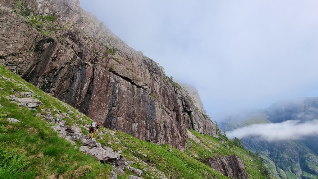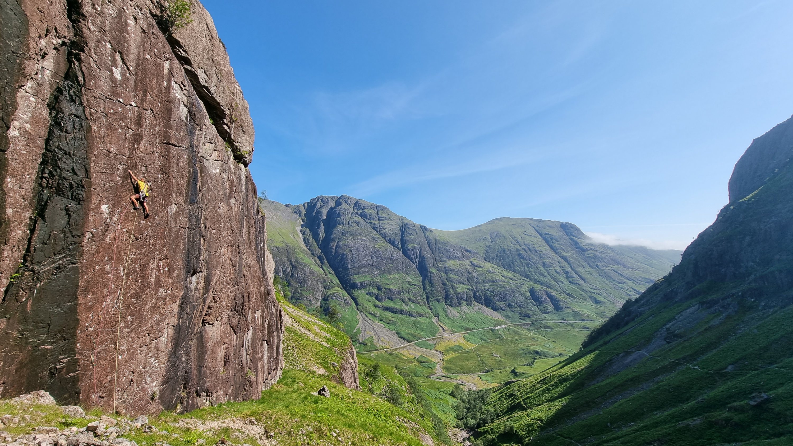 After 5 days of beasting ourselves with two-hour walk-ins and feasting on Extreme and Hard Rock ticks, something had to give for the final day of our Scottish Odyssey if we were going to be home before midnight. Common sense prevailed and we settled for some “gentle cragging” as a wind-down. Or at least as gentle as it gets in Glencoe – still 40mins to the Lower Walls, and our primary objective of Lady Jane, E2 5b.