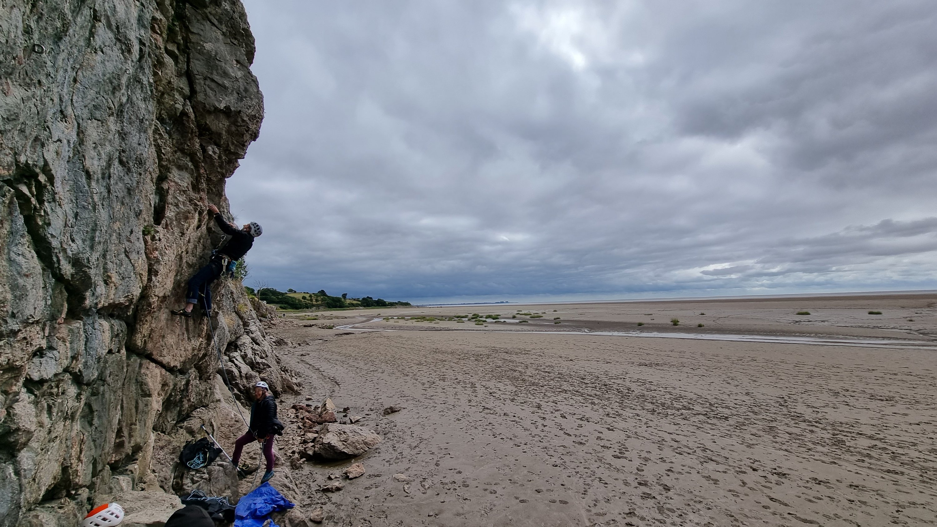 Heading up to the Lakes for Dave’s 60th, with an iffy forecast for the big hills, it seemed like a good opportunity to sample the newly-developed sports climbing on Morecambe Bay near the village of Silverdale – especially as we could also catch up with Keefe and Tansy near their new home.