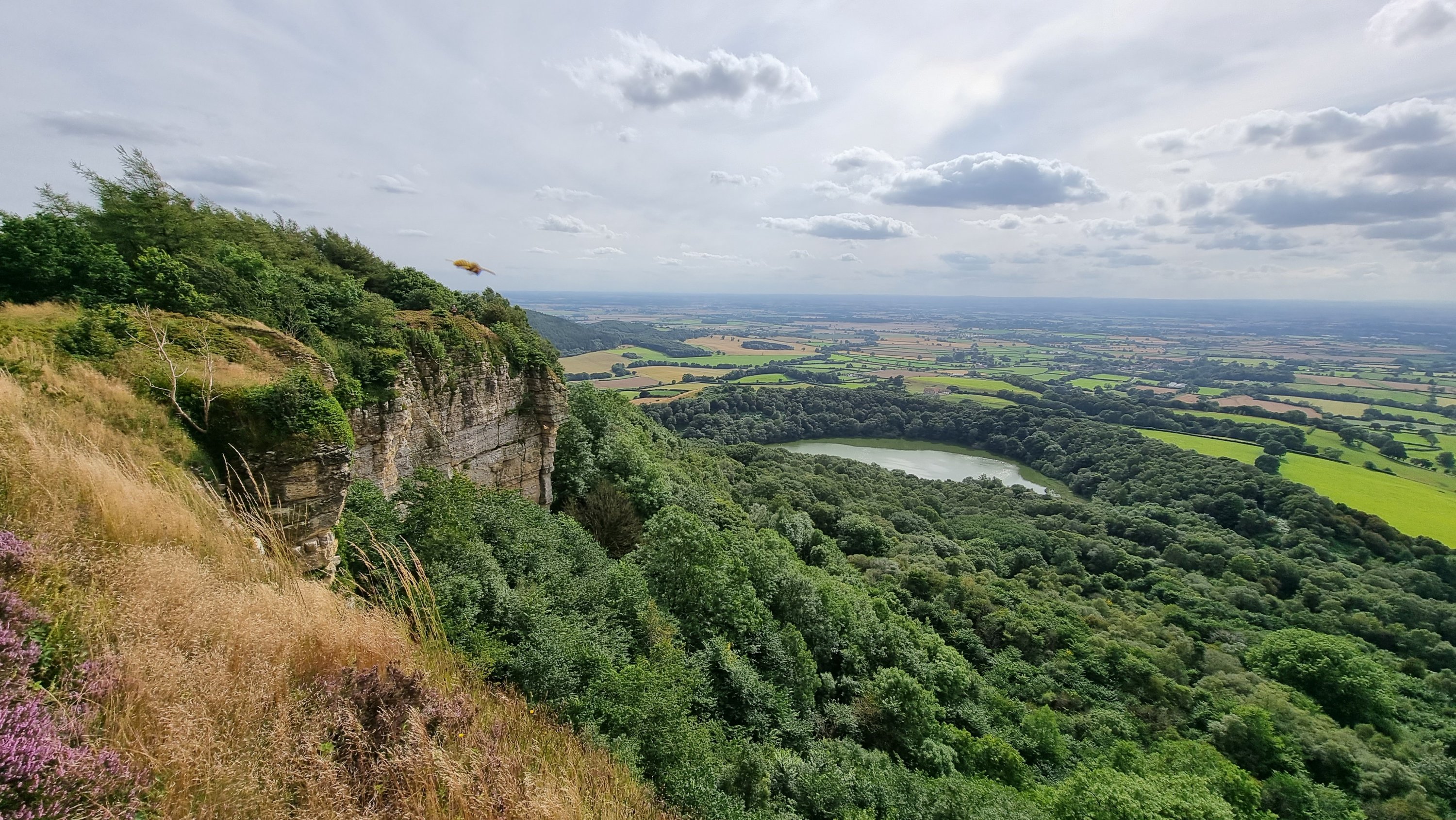 Spurning the attractions of further Peak Scar routes, we head back over Sutton Bank to the palatial visitor centre parking area which is the approach to Whitestone Cliffe. Rest assured – they’re not all here for the climbing! They’re here for the “Finest View In England”: